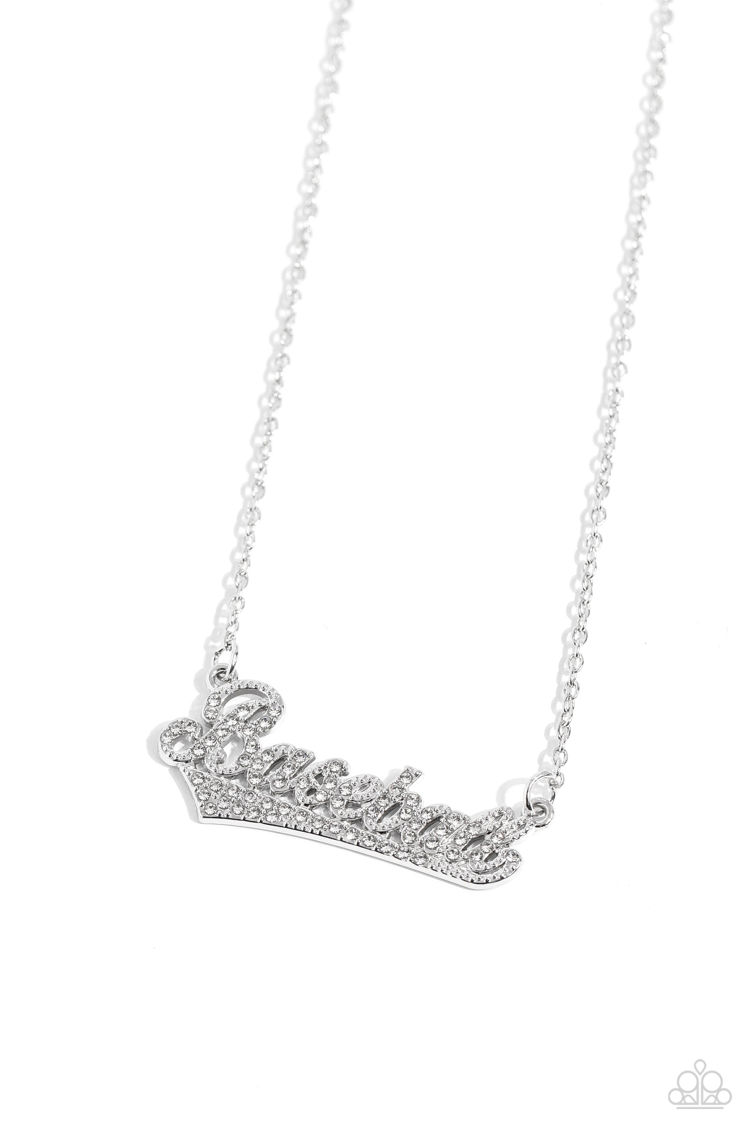 Encrusted in glassy white rhinestones, the word "Baseball" and a silver accent connects to a dainty silver chain, creating a sporty pendant below the collar. Features an adjustable clasp closure.