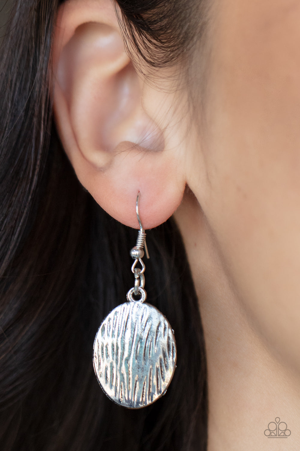 Etched in rustic silver textures, a pair of oversized chevron-like silver frames delicately link into a wild statement piece. Matching textured silver, brass, and copper discs swing from the bottom of the stacked display, adding a noisemaking movement to the rambunctious pendant. Features an adjustable clasp closure.