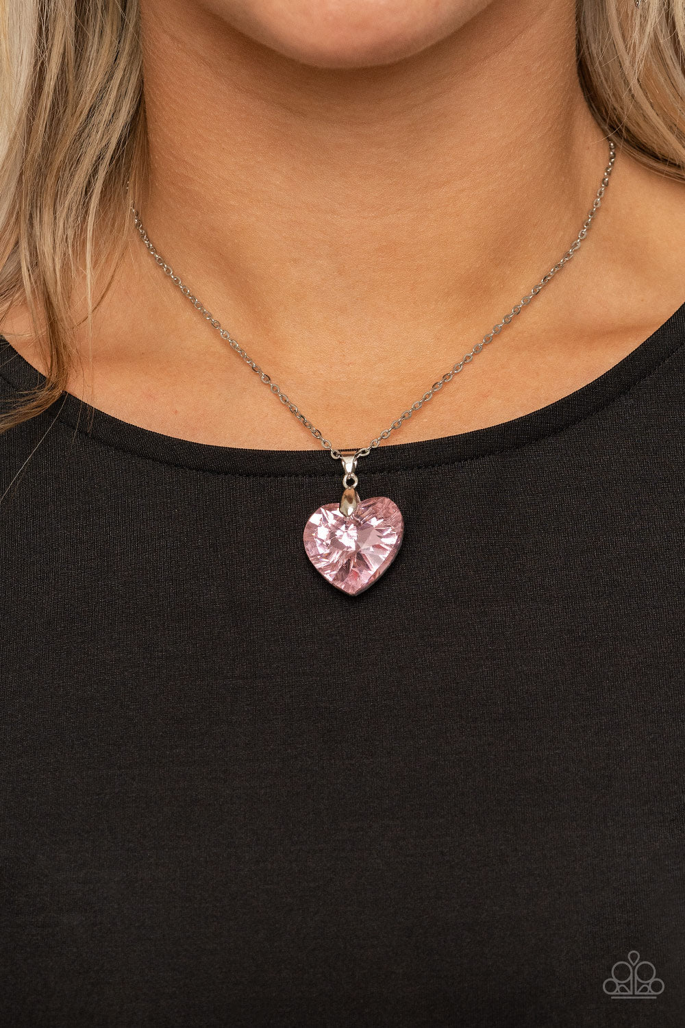 Chiseled into a charming heart, an oversized pink gem slides along a dainty silver chain below the collar for a flirtatious finish. Features an adjustable clasp closure.